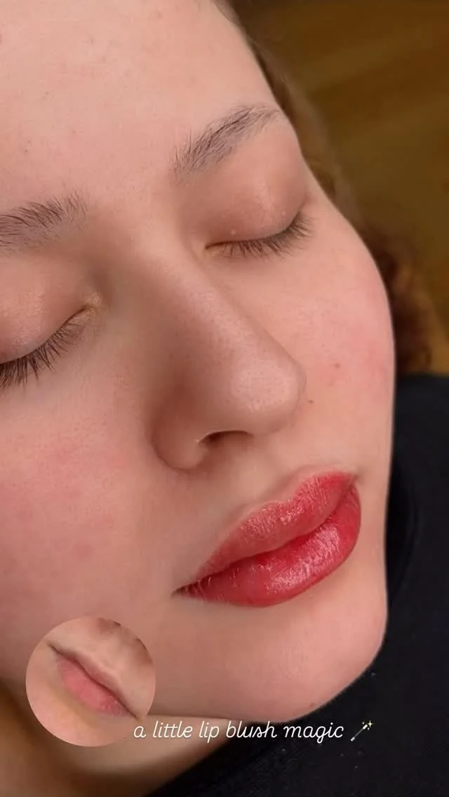 Lip blushing is a form of cosmetic tattooing that gently implants pigment into the lips to create a sheer, watercolor tint. Whether you’re looking to define your lip border, correct asymmetry, or restore color lost to aging, this treatment offers a fresh, balanced look that heals to a soft, flushed finish.